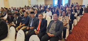 Ketua Majelis Ulama Indonesia (MUI) Provinsi Lampung, KH. Suryani M. Nur, bersama Area Manager Bank Syariah Indonesia (BSI) Lampung Khoerul Wajid, Branch Manager Bank Mega Syariah KC Lampung Putri Rosmala Dewi, dan Branch Manager Bank Mandiri KC WR Supratman Lampung Enrico, menghadiri Upacara Pengukuhan Kepala Perwakilan Bank Indonesia (KPwBI) Provinsi Lampung yang berlangsung khidmat di Aula Lantai IV KPwBI Lampung. Rabu (25/06/2025)